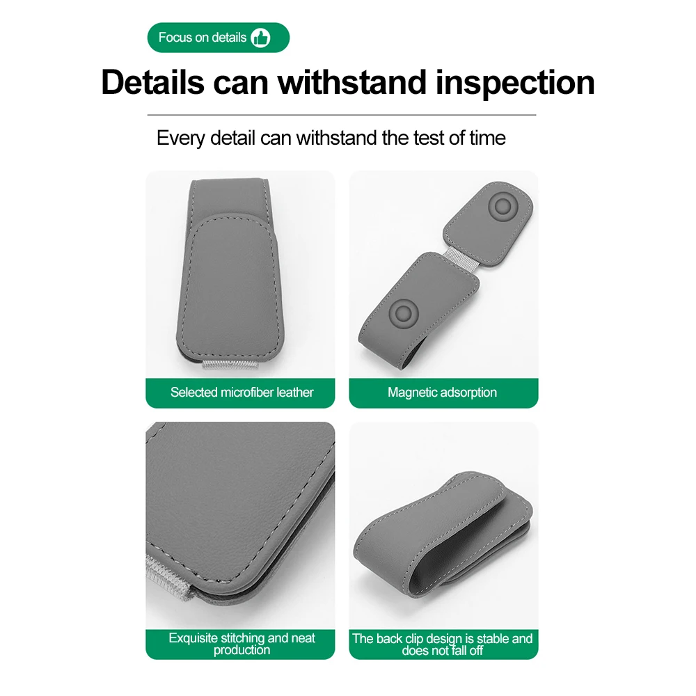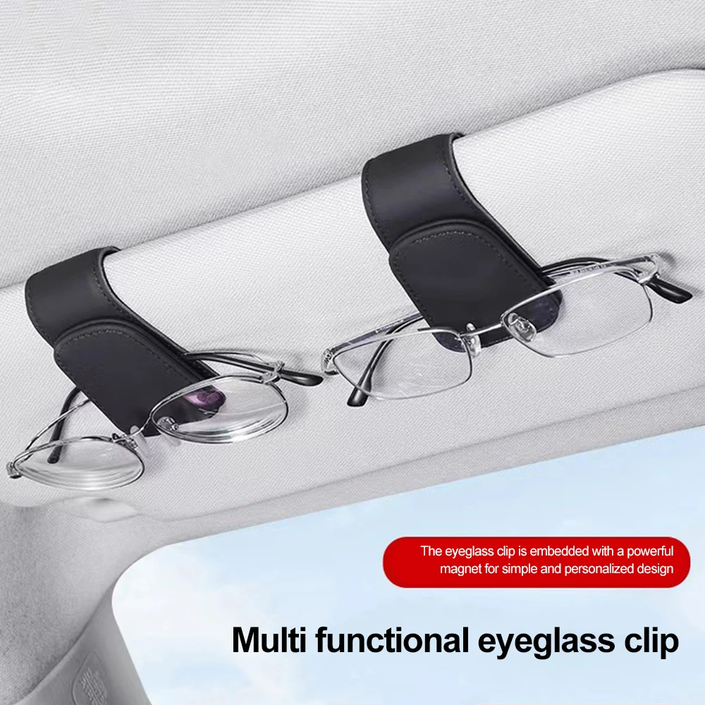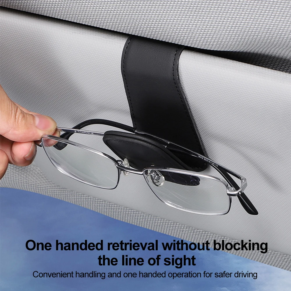 • Leather Glasses Holder :Crafted from high-quality leather, this glasses holder offers a luxurious feel and long-lasting durability. It's not just an accessory, but also a stylish addition to your car's interior.